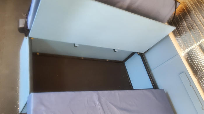Not appearing before in any skoolie build I’ve ever seen is this 52” wide